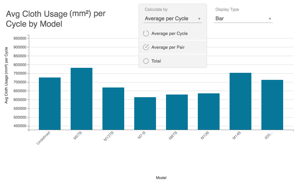 Note: When you set the Y axis to a material usage data item, the Calculate By drop-down list allows you to switch between averaging that data item per cycle, averaging it per unit output, or totaling it.