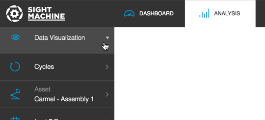 On the Filter Bar, select the type of data you want to review from the Data Type selector (Cycles, Downtime, or Parts).